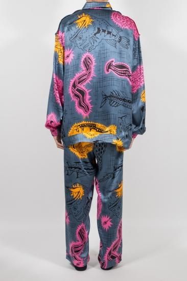 プリントガーゼシリーズのアイコニックなテンタクル柄を16匁のシルクにリプリント、鮮やかにプリントされたメゾンの様なアンティークな仕上がりとレフトフィールドなグラフィックの調和が楽しい、ユニークな遊びのある最高級のパジャマトップです。