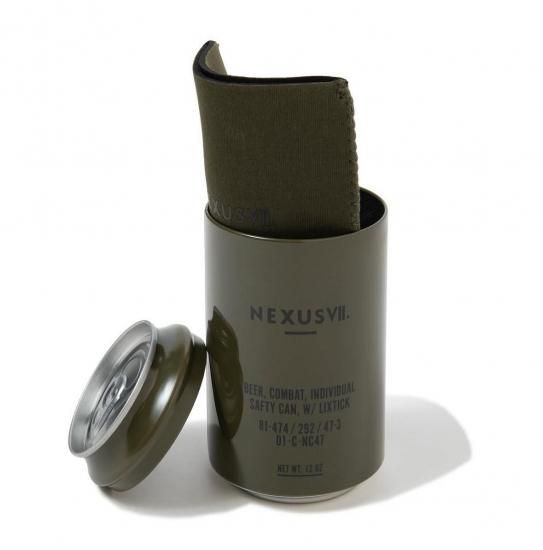 LIXTICK®と展開しているNEXUSVII.別注のミリタリーラインから、小物や現金などを隠せる缶型の収納と保温保冷に便利なクージーのセット。蓋部が外れるスタッシュ缶仕様となっており、缶は開封後に小物入れとしてお使い頂けます。