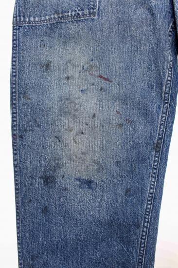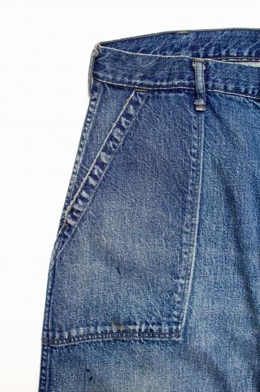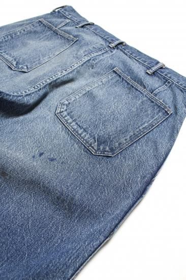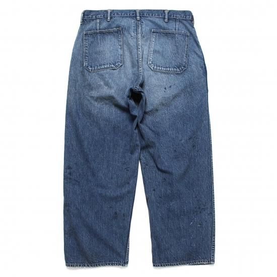 US NAVY DUNGAREE WORKING UNIFORM DENIM TROUSERS。 1940年代に着用が開始されたM-44ユニフォーム。 作業により付いた油染みと、作業を物語る退色感をリアルに表現し、40年代の空気感と、本物志向が頷くヴィンテージ感漂う出来栄え。