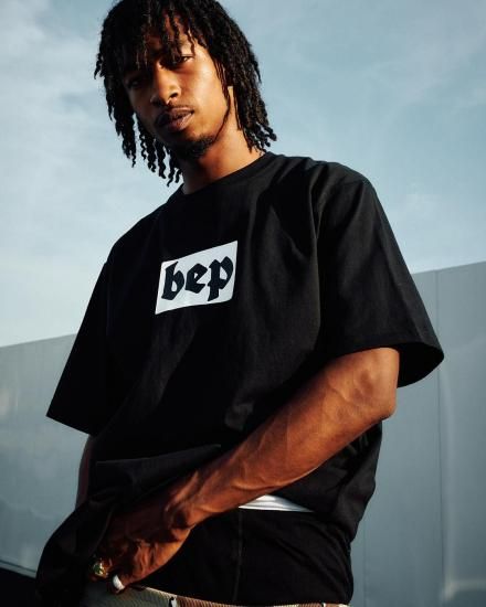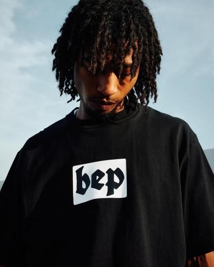 ブランド活動初期に使用していたステッカーデザインをそのままプリントした "BEP" ステッカー T シャツ。