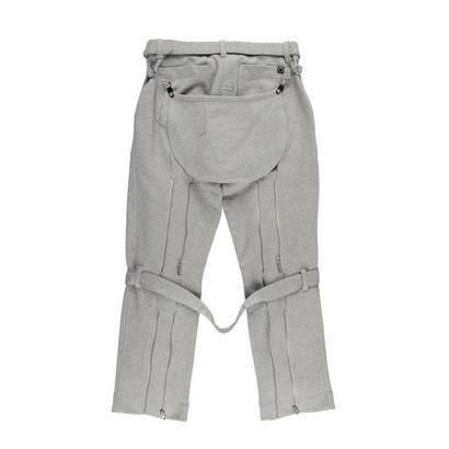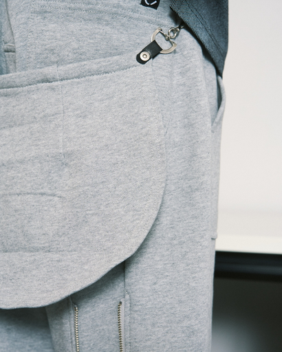 定番のBONTAGE PANTSが久しぶりに大きくアップデート、存在感はそのままに、しっかりとしたスウェット素材で本格仕様のボンテージパンツを作成しました。左右の足をつなぐベルトや金具使いなど定番仕様を引き継ぎつつ、これまでには付かなかったバムフラップも作成し、さらに本格的なディテールへの深化と相反する様な柔らかな風合いへのアップデートが逆説的にパンキッシュな雰囲気を際立たせています。スウェットパンツらしい、杢グレーとブラックでの展開。定番の着こなしに加えて、リラックスした着こなしのスタイルアップにも、ぜひ楽しんでください。
