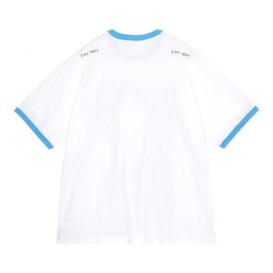 後ろ身頃ショルダーにCAV EMPT。襟、袖口で色・生地切り替え。ビッグシルエット。