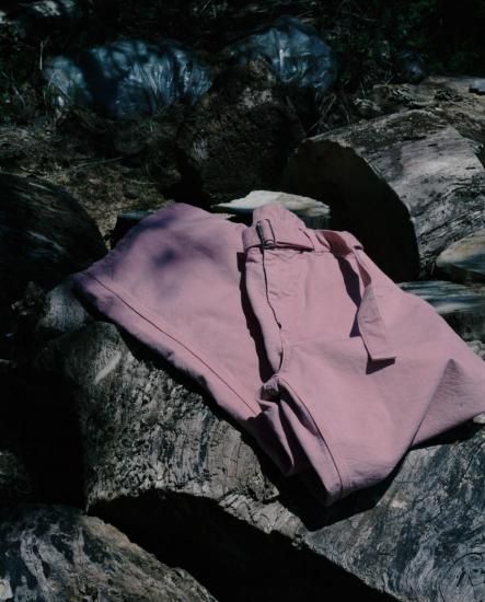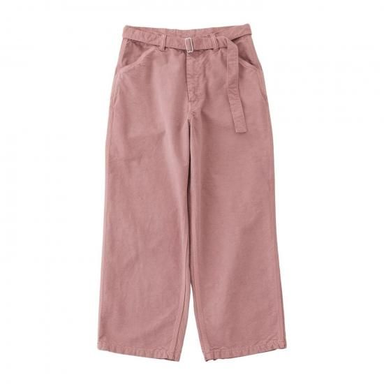 コットンキャンバス素材を使用したベルテッドパンツ。