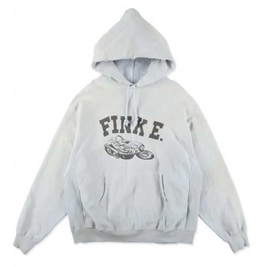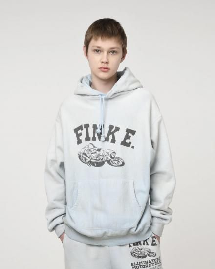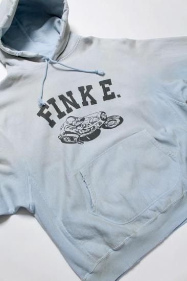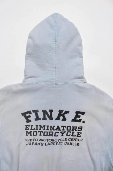 TOKYO MOTORCYCLE CENTERがスポンサードするバイクチーム「FINK ELIMINATORS MOTORCYCLE」のスタッフウェアをイメージ。各地を走り回って日焼けした表情と、寒空の整備で汚れ・擦り切れた風合いを再現。 ビンテージに見られるオールドディテールを踏襲しつつ、90年代フィットに仕立てたオールシーズン対応の肉厚スウェットは、ブランドを代表するパーカー。