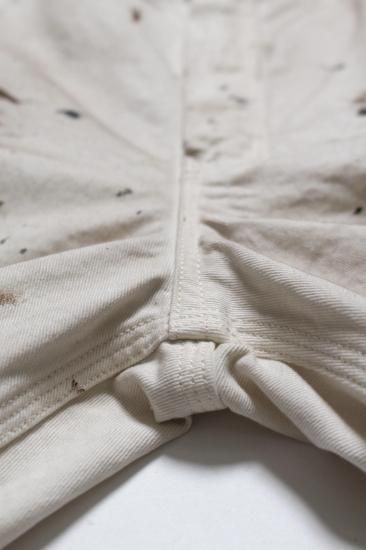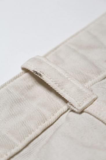 高度経済成長と郊外化により、建設業や製造業の雇用が増加し、ワークウェア需要が戦後ピークに達した1950〜1960年代をイメージして製作。 1970年代に入りファッション用途が広がる前の、ギリギリまで残る剛健さを感じさせるデザイン。 ペンキ屋が着用しているペインターパンツを意識することなく、日々履き続けた結果として生まれたリアルな使用感。 その経年の表情が、ファッションとしての存在感を際立たせる、そんな一本を形にした。