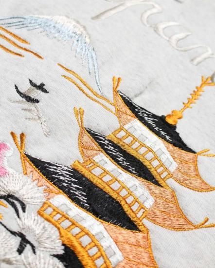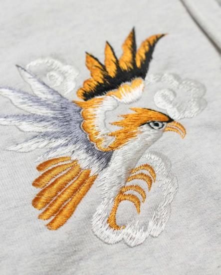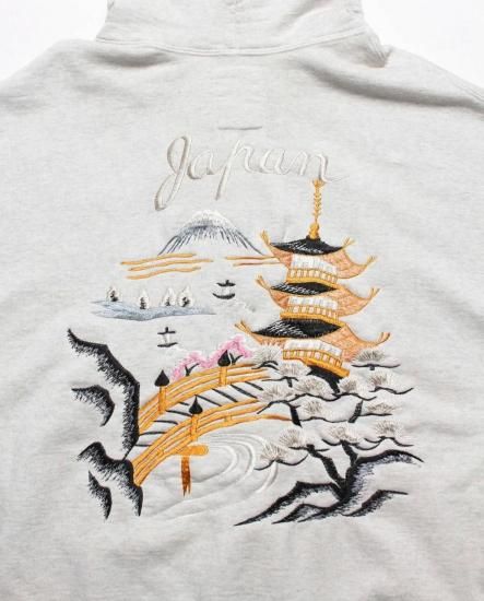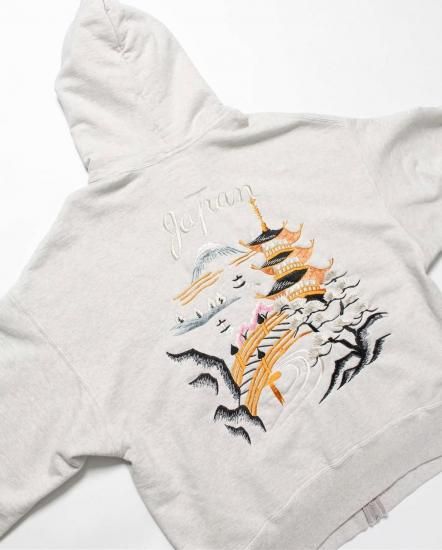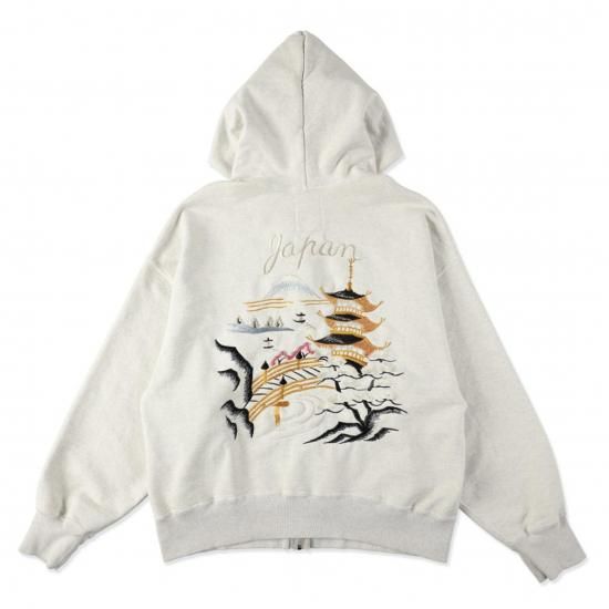 日本を訪れたUS ARMYの兵士が、日本でスカジャンを売る刺繍スーベニア屋さんで、自分のもつジップパーカに刺繍を頼んだ物語で製作。 ビンテージに見られるオールドディテールを踏襲しつつ、90年代フィットに仕立てたオールシーズン対応の肉厚スウェットは、ブランドを代表するパーカー。