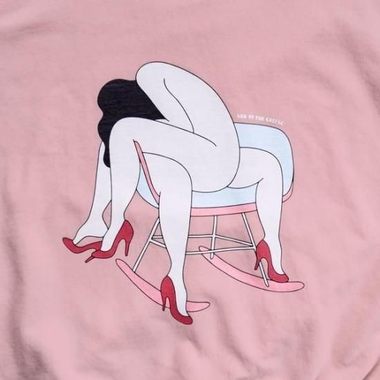 女性と象徴的なインテリアや名作チェアを組み合わせて描くことで知られるFUCCIによる一枚。