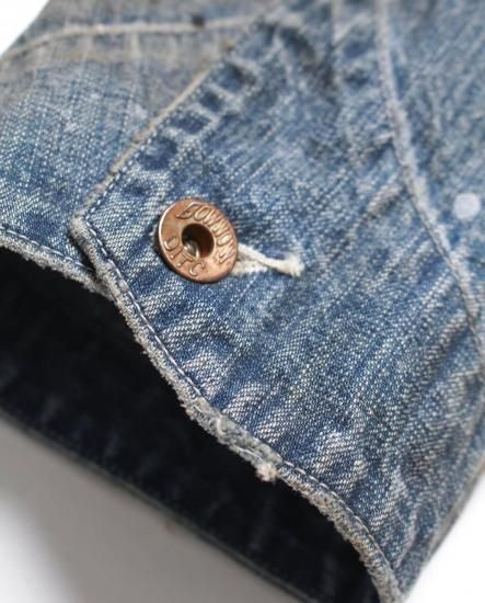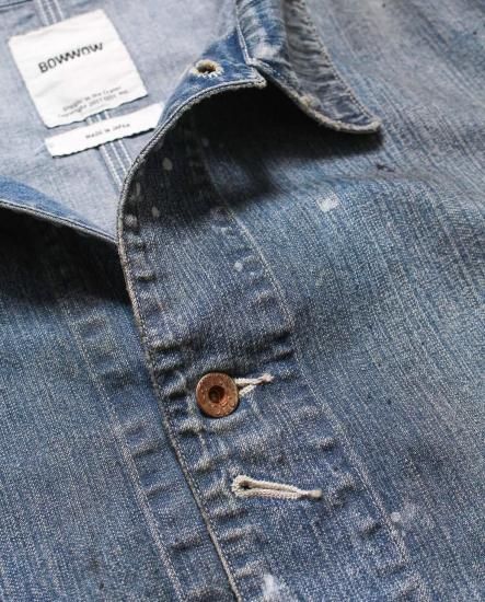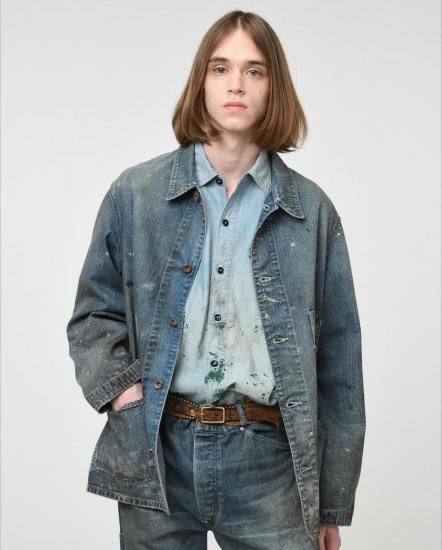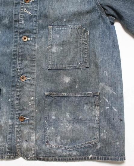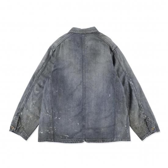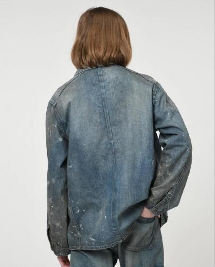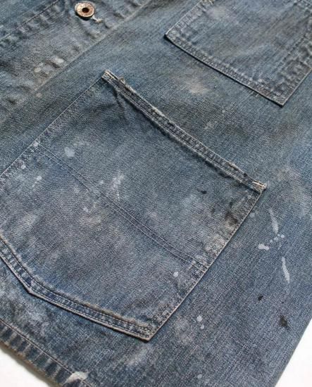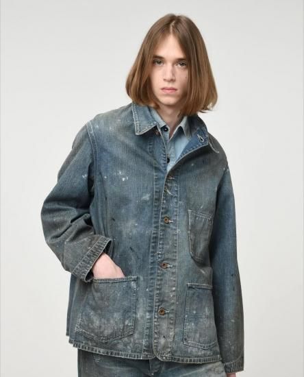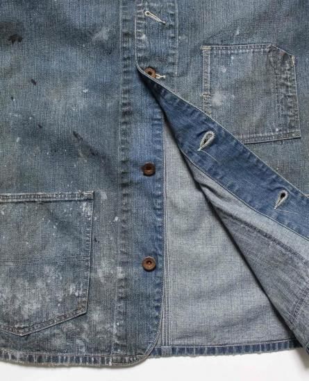 産業が息づき、機関車が大地を駆け抜けていた1920年から1940年代前半。 鉄路の響きとともに、ワーカーたちの誇りを象徴していたのが、この鉄製ボタン付きカバーオール。 90年代からのヴィンテージ市場で確固たるものとなった30年代を感じさせるワークデニムに、無骨で存在感ある鉄製ワークボタンを採用。 重厚な質感と経年で深まったかの様な加工によるリアルな表情は、当時の作業着が持つ機能美そのもの。 ウォッチポケットや、ポケットの配置、40年代以前特有のカバーオールの型紙、縫製仕様も当時の意匠を踏襲し、時代背景まで映し出す仕上がりとなっている。