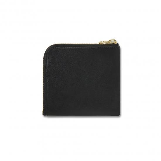 国産のカウスムースレザーを使用したジップウォレット。オールドイングリッシュ書体で表現した "OE" ロゴをゴールドの箔押しで表現している。