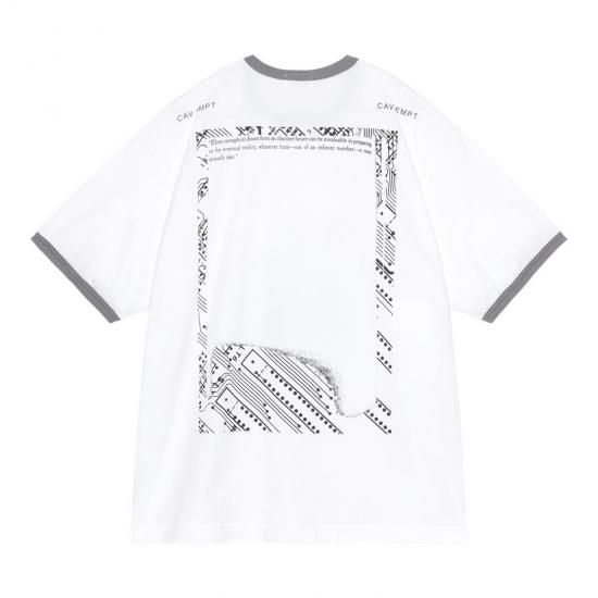 後ろ身頃ショルダーにCAV EMPT。襟、袖口で色・生地切り替え。ビッグシルエット。