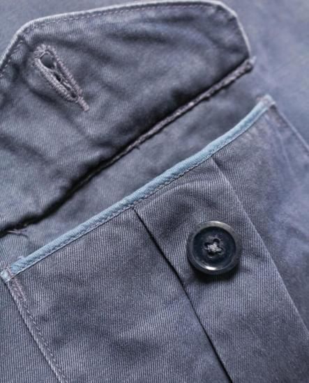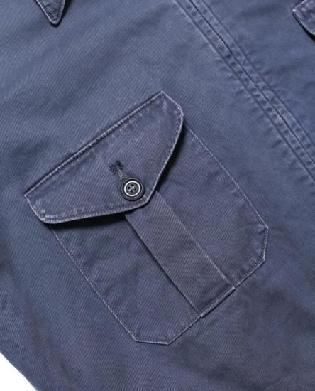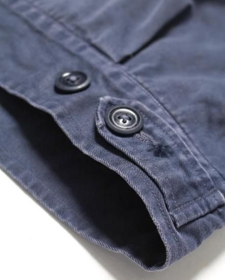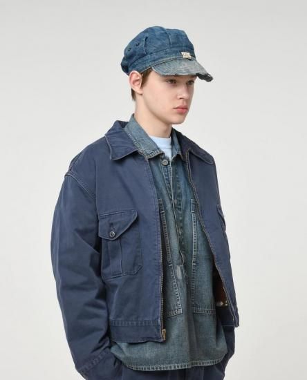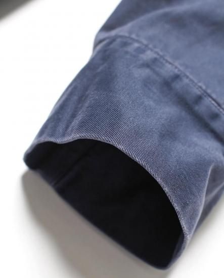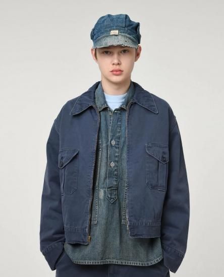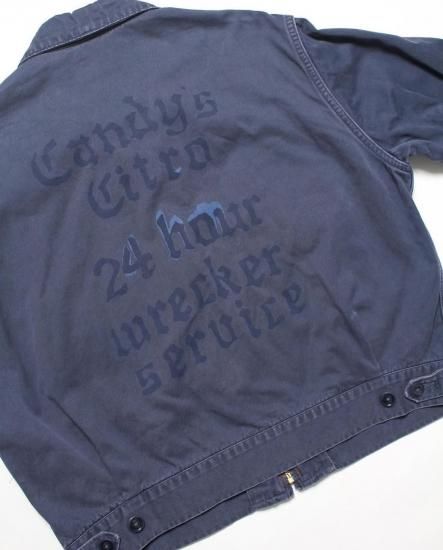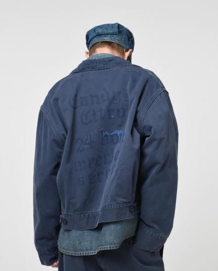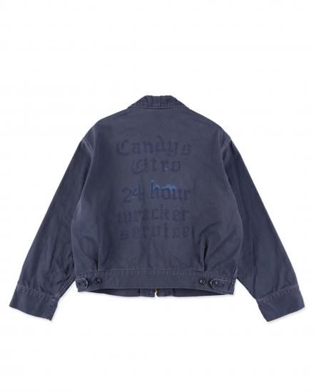 戦時下の服飾生産需要拡大によりワークウェアブランドが急成長し、クオリティが完成期を迎えた1950年代。 本作は、その時代のワークジャケットをイメージして製作した一着。 若干短めの丈で設計されたボディは、当時アメリカで24時間営業のレッカー業を営む会社の作業着をモチーフに構築。 おしゃれな社風のその会社が特注で仕立てた設定で、裏地にはナバホ柄のプリントネル生地を採用。 ワークウェアの無骨さと、遊び心あふれるカスタム感が融合したデザインとなり、重労働作業による経年変化加工感も合わせて表現。
