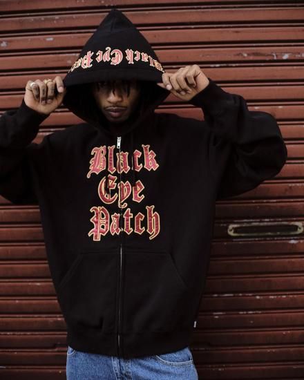 【BlackEyePatch/ブラックアイパッチ】STACKED OE LOGO ZIP HOODIE BLACK