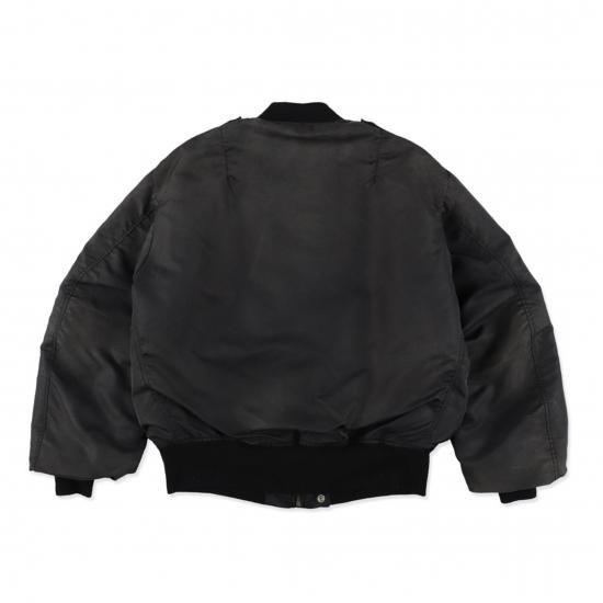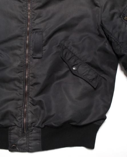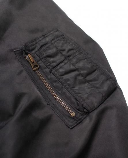 1950年代から1960年代にかけて活躍した、U.S. Air Forceのライトゾーン用フライトジャケットを代表する L-2B FLIGHT JACKET。中綿を持たない構造は現代のストリートにも最適。本作のライニングは、初期型仕様を再現し、レスキューオレンジではなく都市型仕様のブラック。見たこともないほど着古されたフライトジャケットを作り込むため、ファスナーの歪みにまでこだわり、リメイク工程を取り入れた渾身の一枚。空での強烈な太陽光による日焼けや、繰り返しの洗いによって生まれるリアルなヤレ感を表現。シルエットの歪みも含めて再現し、本物を知る者にこそ袖を通してほしいアイテム。