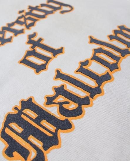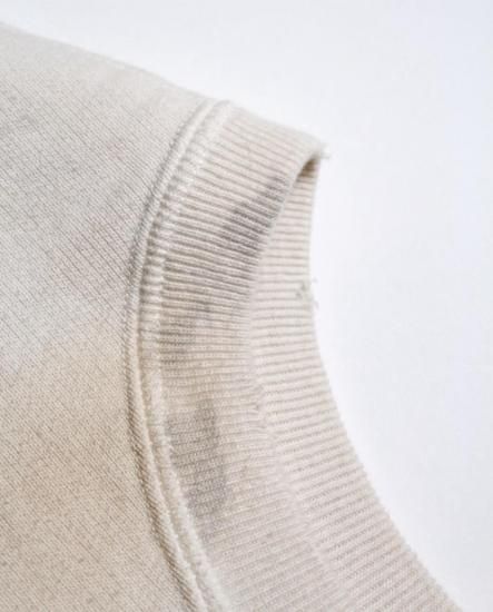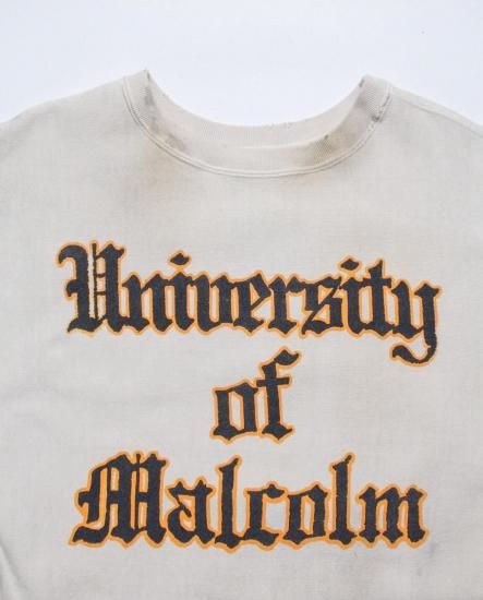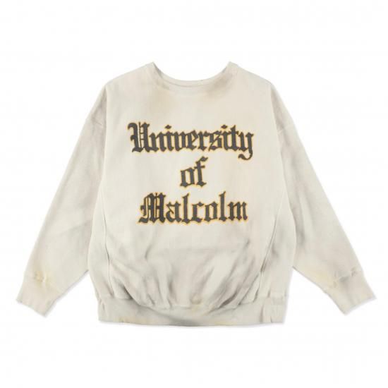 架空のマクラーレン大学を舞台に、60年代の購買部で販売され、生徒が部活で着倒したスウェットを再現。植毛フロッキープリントを採用し、毛足の表現までプリント職人の拘りを凝縮し、新たなプリント表現が完成した。ブランドの真骨頂たる加工で、汗と摩耗が生んだフェードと汚しを絶妙に表現し、“当時モノ”の佇まいを宿した一枚。
