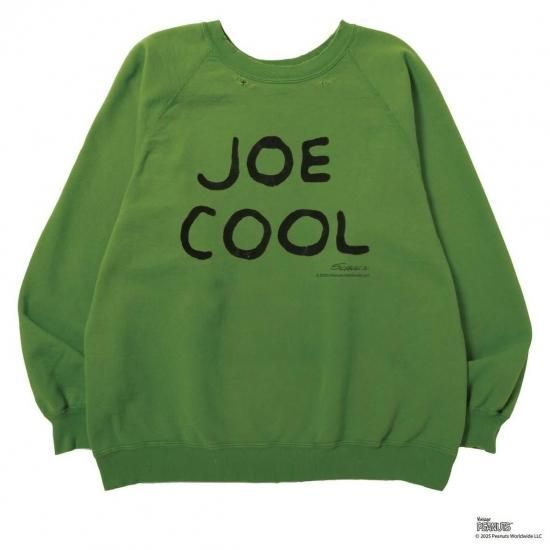 USAコットンのオリジナル丸胴生地を使用し、ヴィンテージのBEETHOVENやSNOOPYシリーズのボディになっているSPRUCE社製のスウェットの縫製方法を踏襲し、ヴィンテージのスヌーピーシリーズでは展開されなかったJOE COOLの文字をチェーン刺繍で再現した全体にヴィンテージ加工を施したPEANUTS社のオフィシャルコラボレーションスウェットです。
